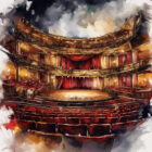 A grand theatre stage with red curtains, ready for a performance.