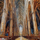 A grand Gothic cathedral with soaring arches and stained glass windows.