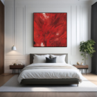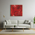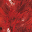 A vibrant explosion of red paint, with hints of white.