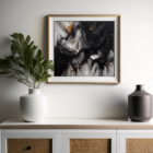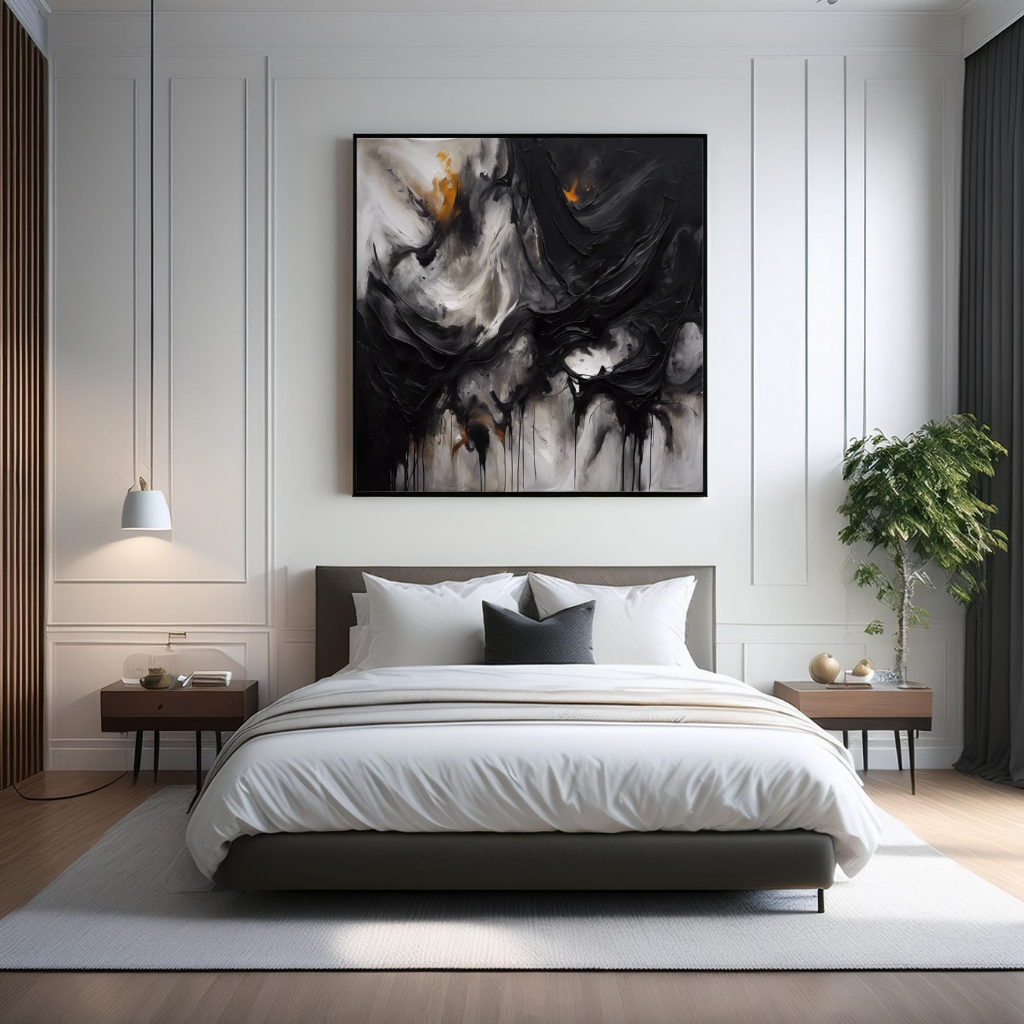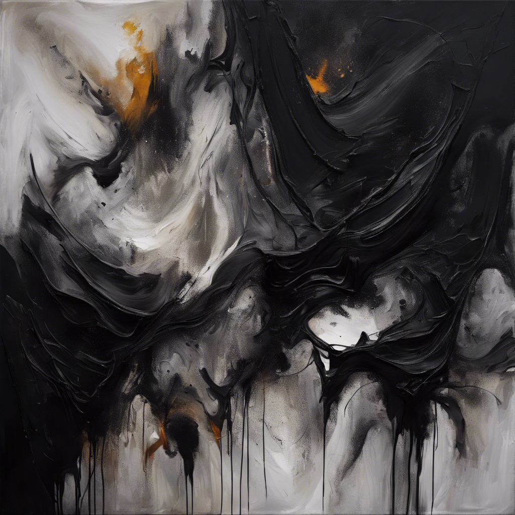 A dramatic interplay of light and dark, with bold strokes and textured surfaces.